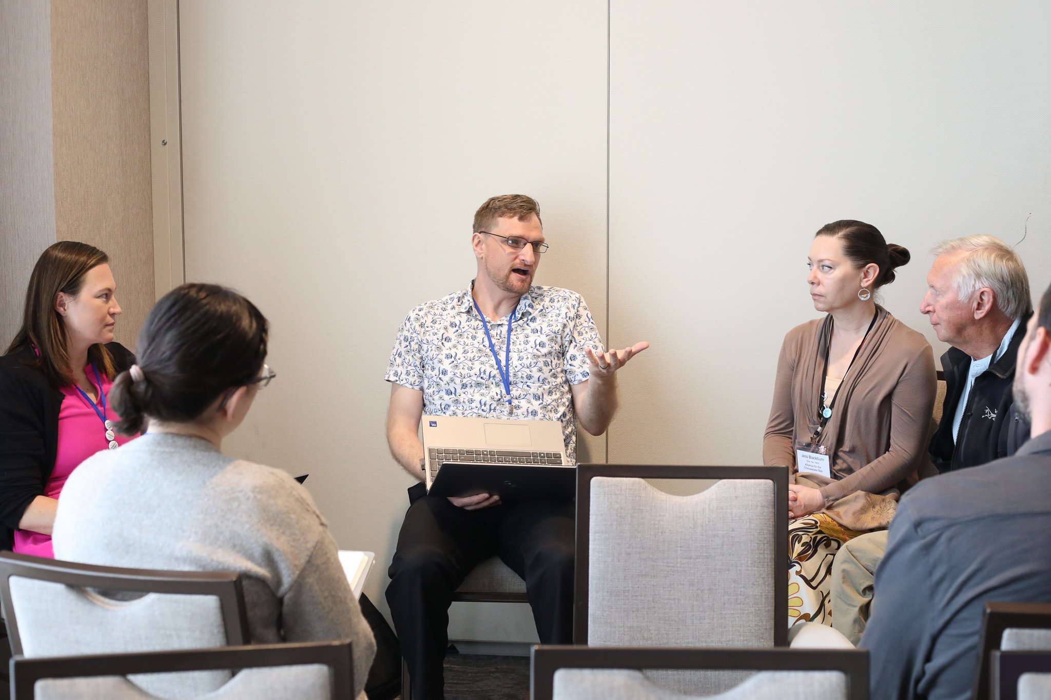 There are eight break out groups set up around the room and in the rooms across the hall. Each group represents an area connected to data centers. Self-select which group you would like to join to collaboratively brainstorm and discuss ideas and resources necessary to better manage and potentially reign in the unchecked spread of data centers throughout the Chesapeake Bay region.