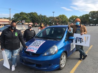 The team recently formed a voter registration caravan that made its way through the Wyoming Valley, the Poconos and Lehigh Valley on a rainy Saturday. Attached to the vehicles were magnetic signs featuring bar codes that a viewer can aim her/his/its smart phone at and be directed to a voter registration website. The caravan ended in Allentown where it drove by a rally and march for Breonna Taylor.