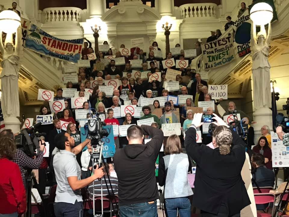 On March 9, more than 150 individuals representing 35 co-sponsor organizations—including members of the Choose Clean Water Coalition—stood with PennFuture at a rally in the Capitol rotunda, urging Governor Tom Wolf to veto House Bill 1100.