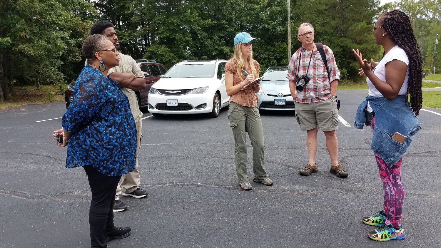 Header photo of Brown Grove community members speaking with Bay Journal staff. Photo by Chris French.
